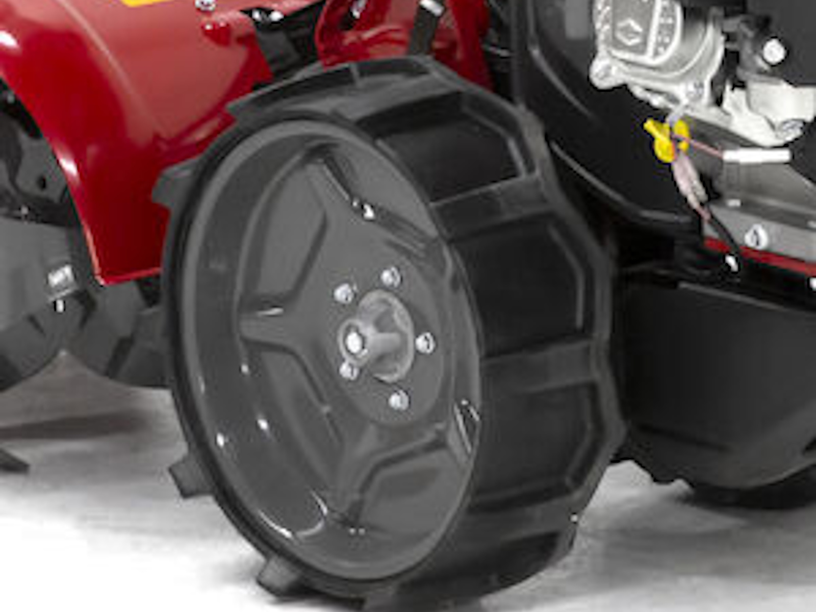 - The super-wide airless wheels never go flat and provide incredible traction.